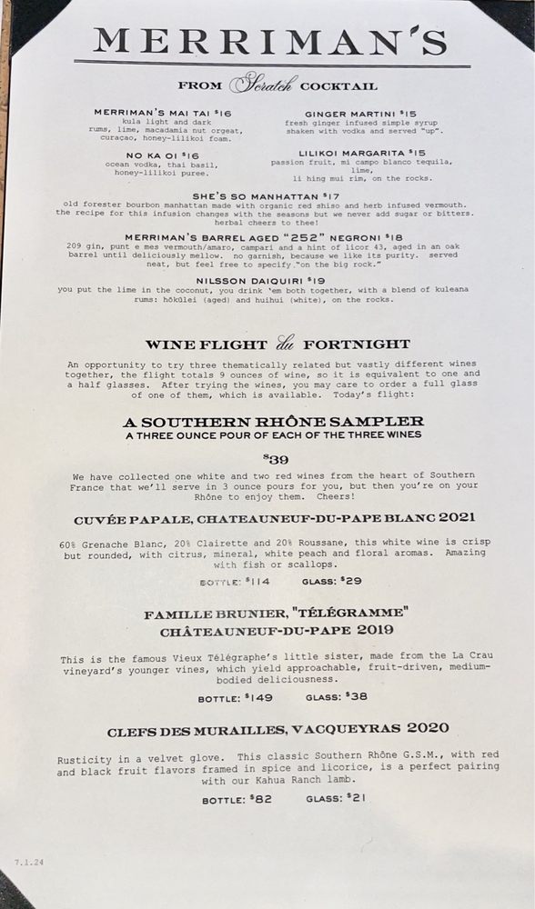 Overall, Merriman's Waimea is a standout restaurant on the Big Island, offering a blend of casual elegance, outstanding food, and top-notch service that is sure to impress any diner. Make sure to call ahead for reservations to secure your spot at this culinary gem in Waimea.